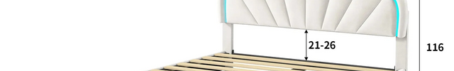 Het bedframe combineert MDF, verstevigde panelen en een metalen dwarsbalk. Het draagvermogen van 200 kg garandeert robuustheid en stabiliteit. De witte fluwelen bekleding voelt zacht aan, is prettig in gebruik en duurzaam. De lattenbodem met 12 latten verhoogt het comfort en biedt gelijkmatige ondersteuning voor het matras.