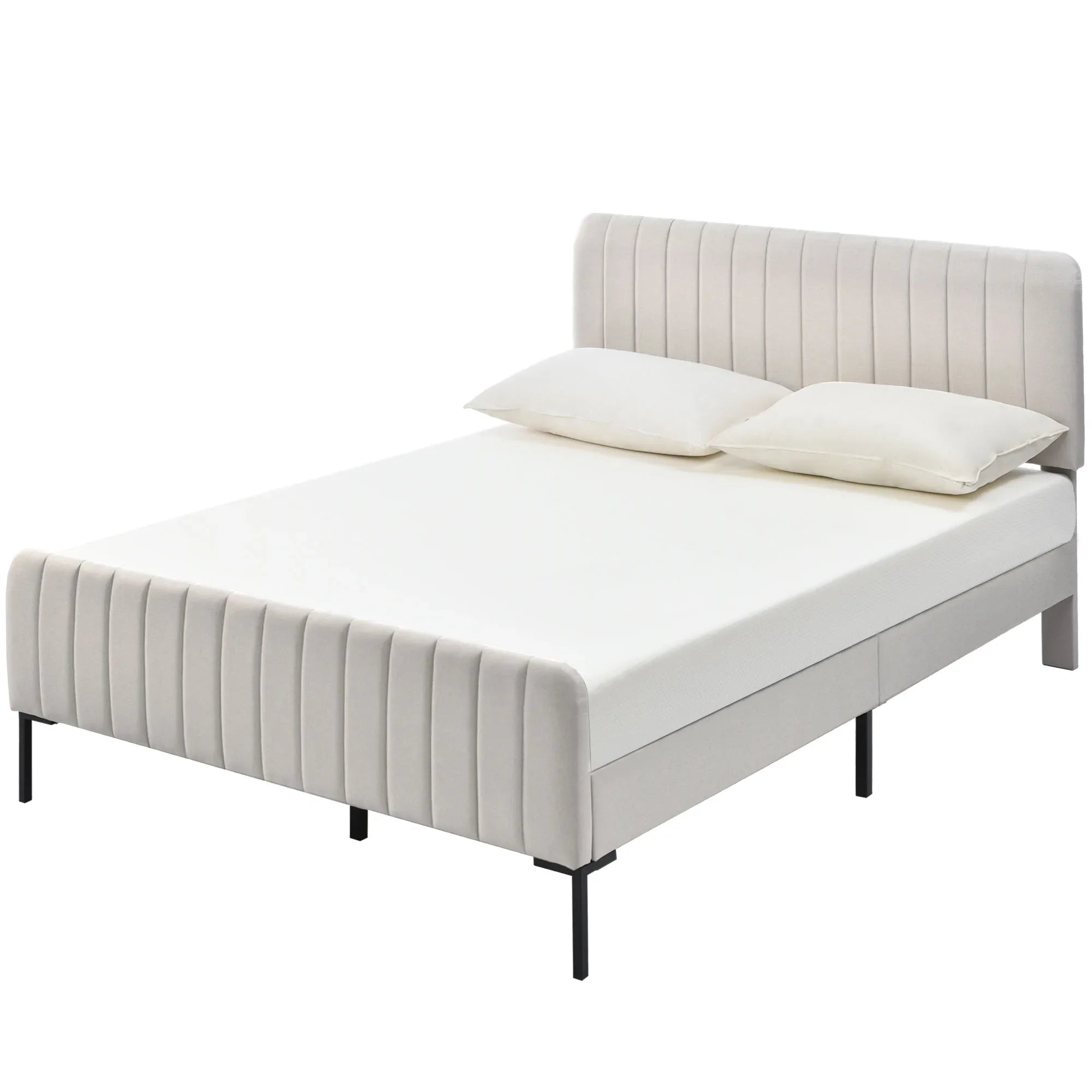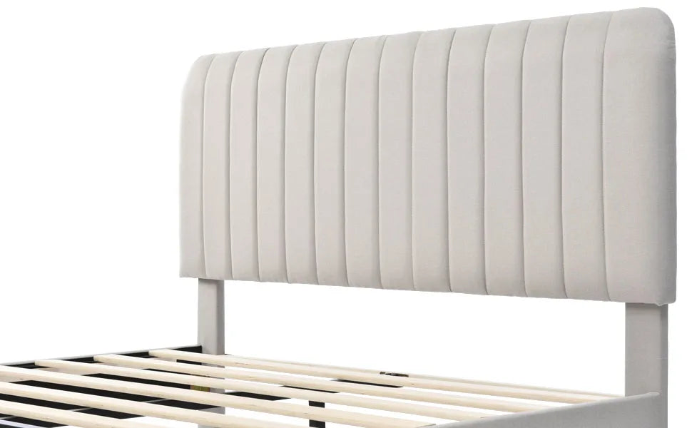 Tweepersoonsbed 140x200 – Beige stof, verstelbaar hoofdeinde